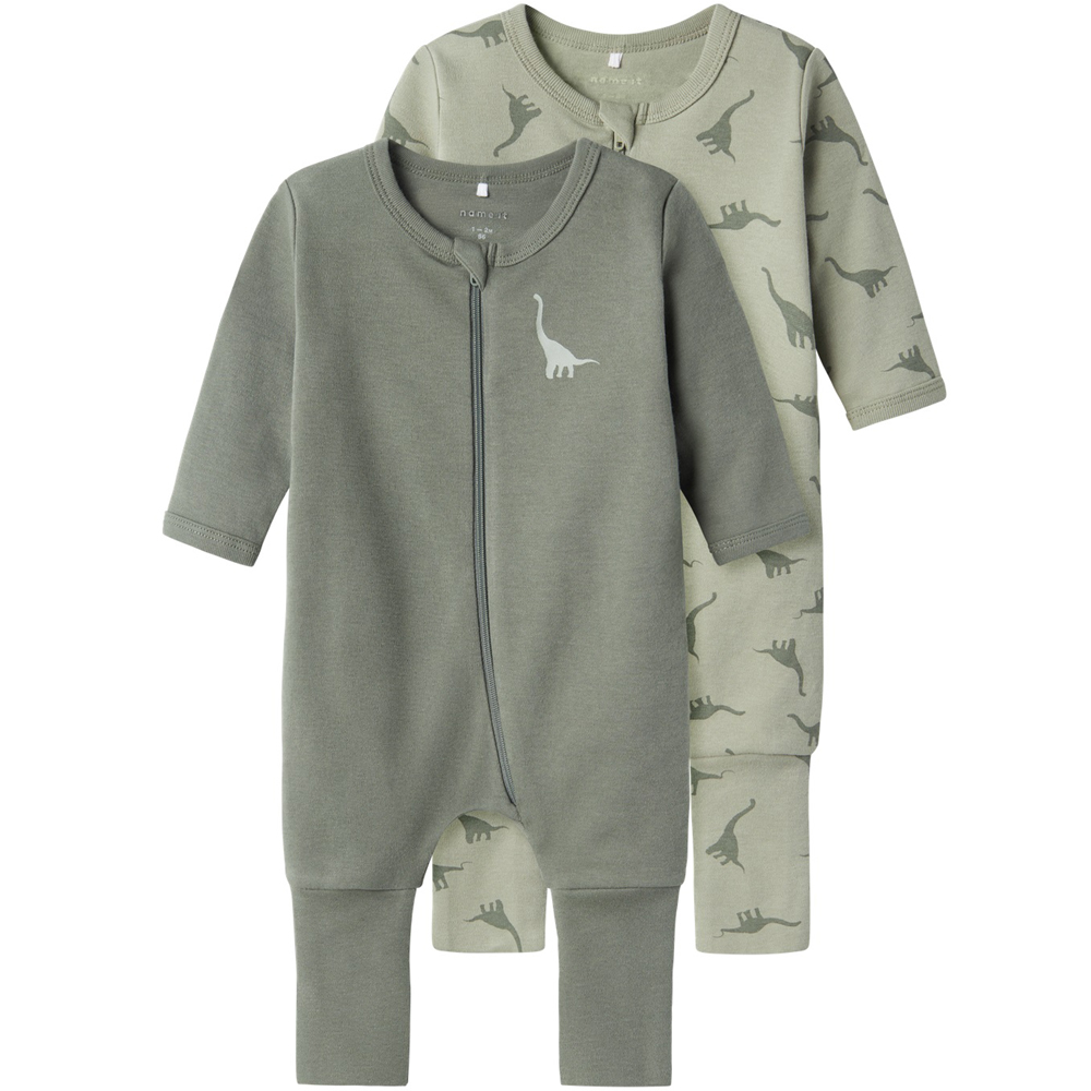 2-pak natdragt (0 mdr/50 cm) – praktisk ombuk ved fødderne Agave Green Nbmnightsuit Dino