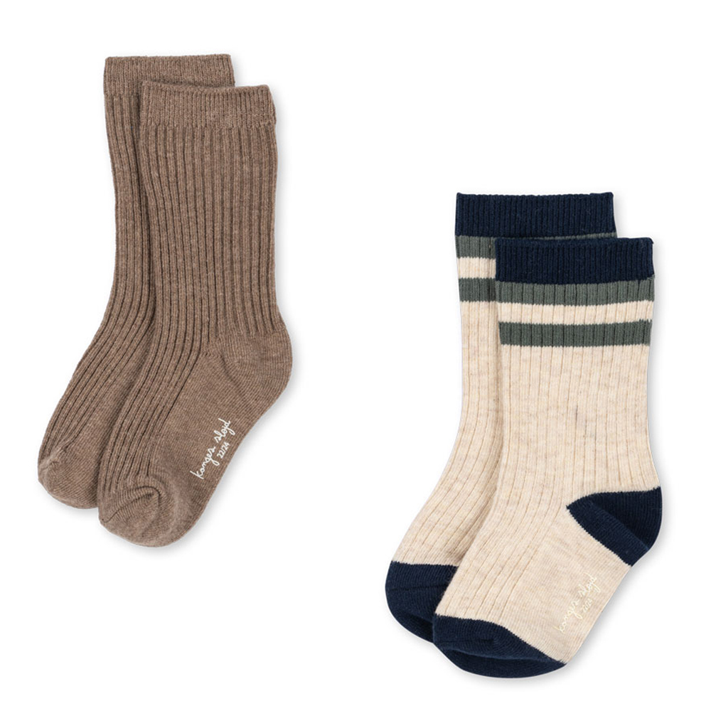 Disse 2-pak rib strømper fra Konges Sløjd er perfekte til de små fødder i størrelse 17-18. Strømperne har en blød ribbet struktur, der sikrer en god pasform og komfort hele dagen. De er ideelle til både hverdag og leg. Med et sæt strømper får du praktiske og stilfulde accessories til dit barns garderobe. De er lette at kombinere med forskellige outfits, hvilket gør dem til et must-have for forældre.