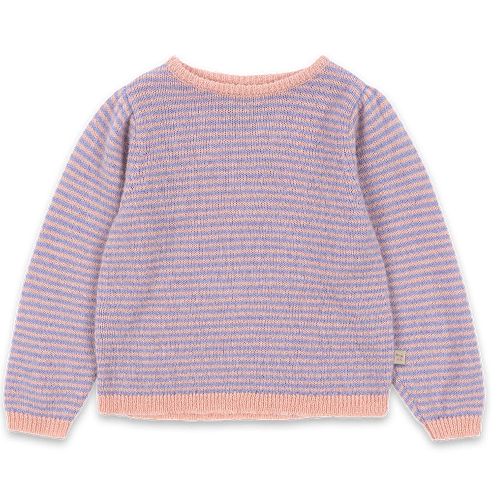 Denne striktrøje i uld er blød og varm, perfekt til børn på 2 år. Den er holdbar og nem at rengøre, hvilket gør den ideel til leg.