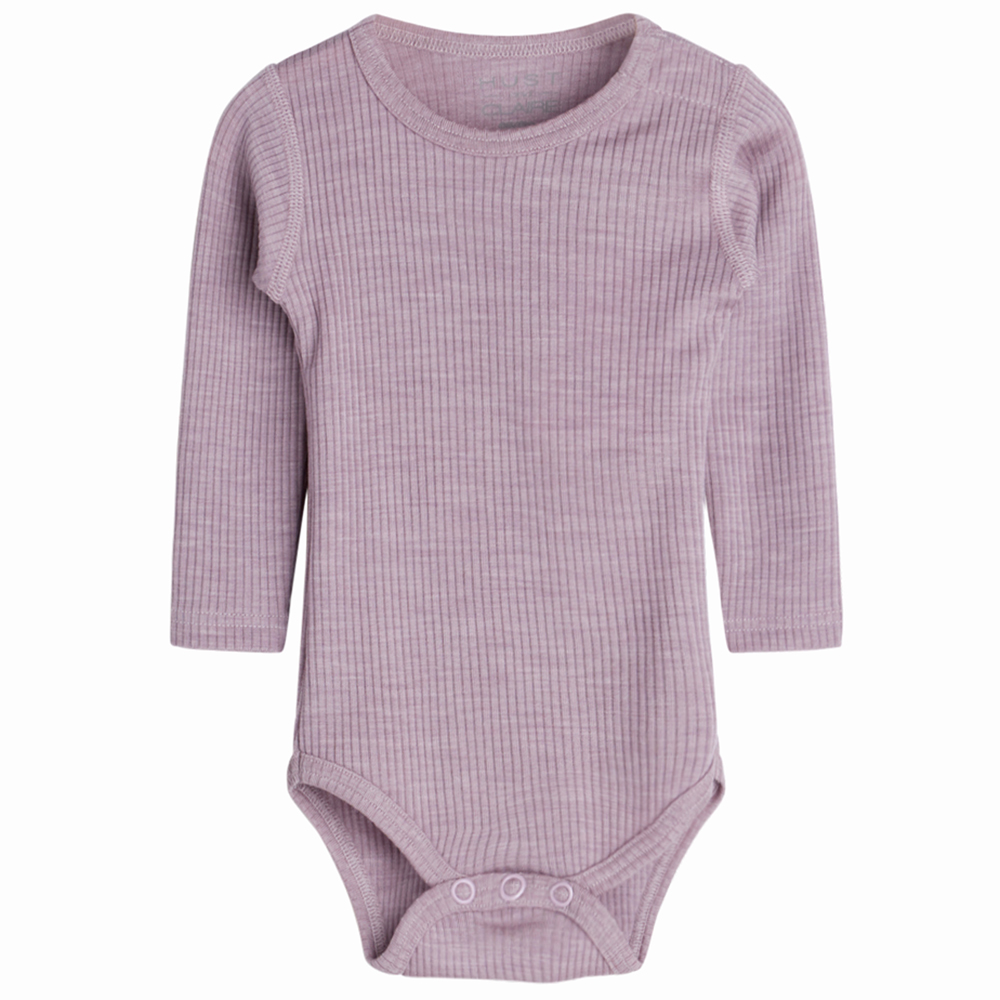 Denne bløde uld rib body er perfekt til nyfødte med sin komfortable pasform og naturlige materialer. Den er let at vaske og holder sig pæn.