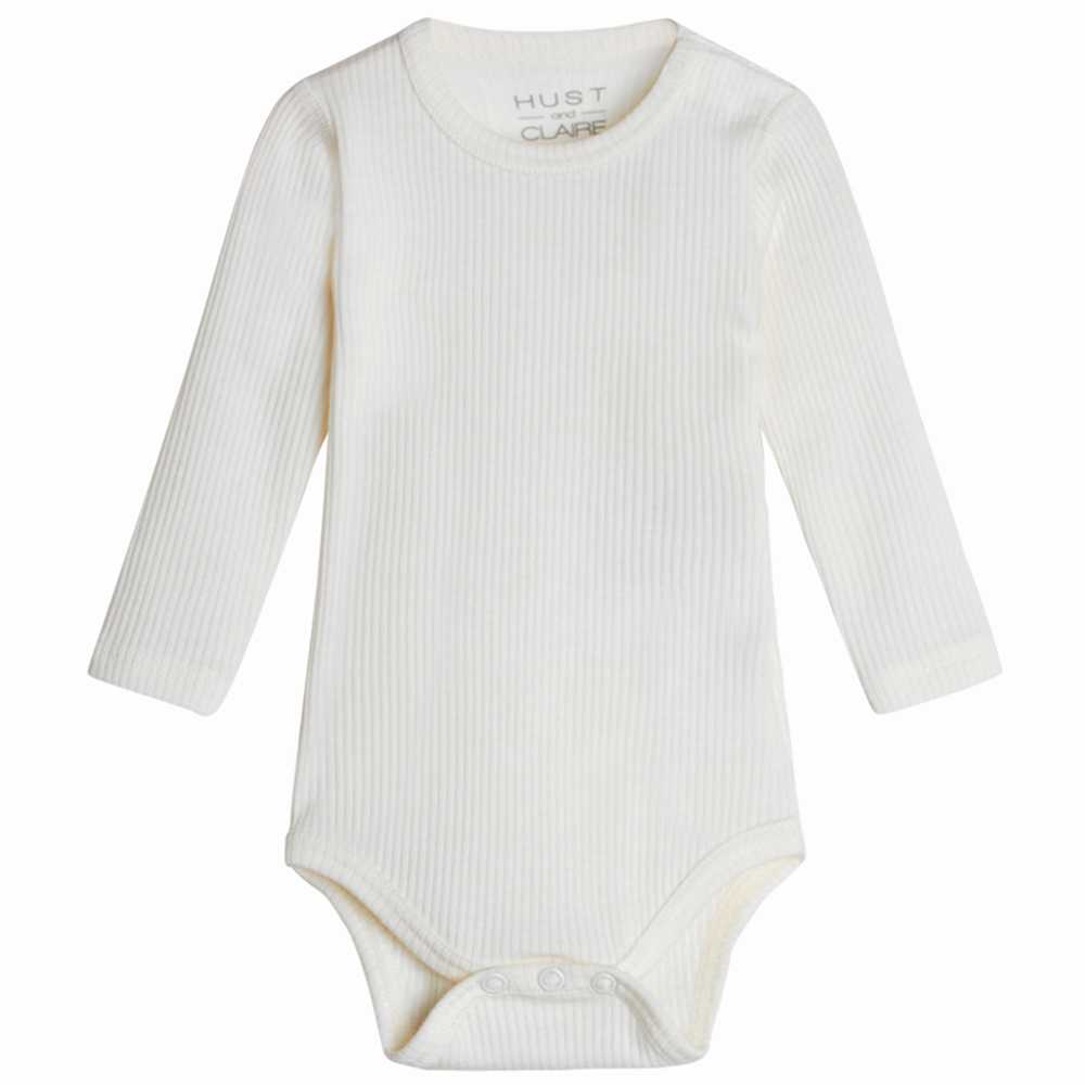 Denne rib body i uld er blød, varm og behagelig for din baby. Den er perfekt til 6 måneder og tåler vask, hvilket gør den praktisk til daglig brug.