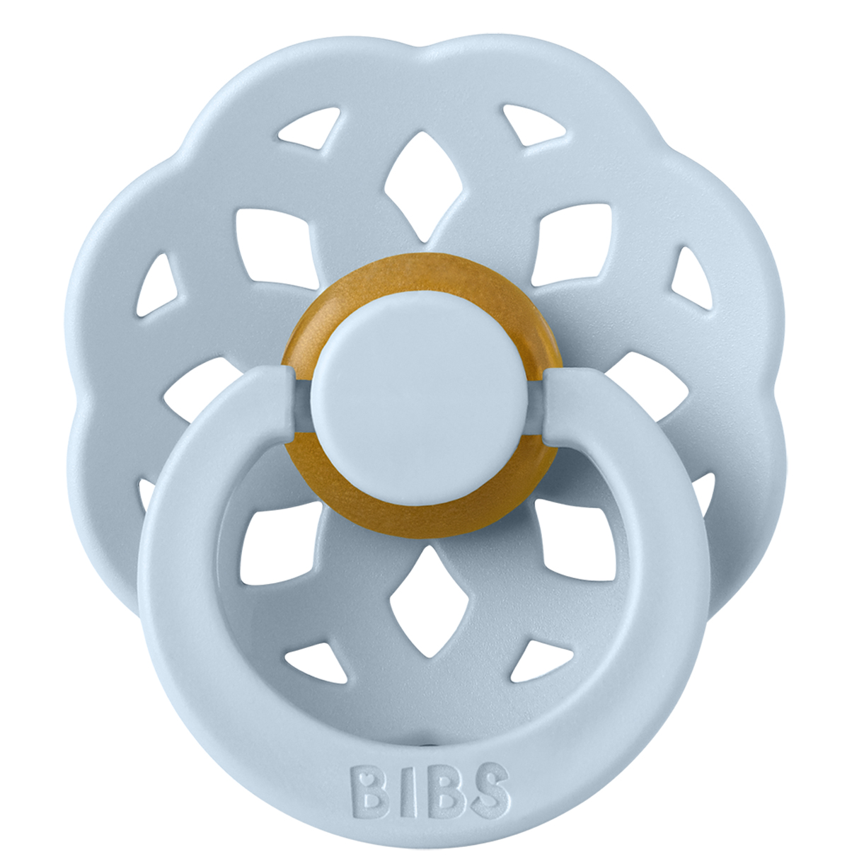 Bibs i baby blue er lavet af blødt latex, der sikrer komfort og sikkerhed for dit spædbarn. Passer til børn fra 0-6 måneder og er nemme at rengøre.