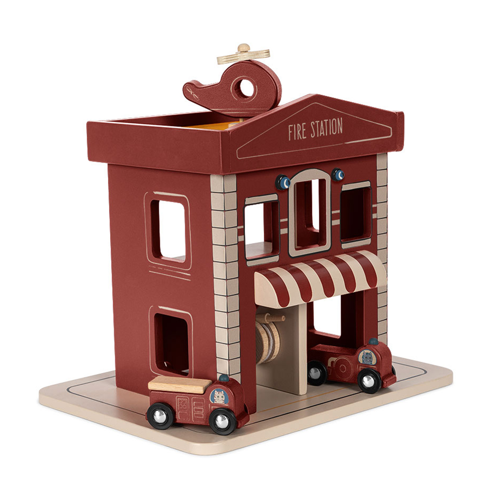 Denne brandstation i træ fra Konges Sløjd er sikker og holdbar, perfekt til leg. Den stimulerer kreativitet og tilbyder underholdning i timevis for børn i alle aldre.