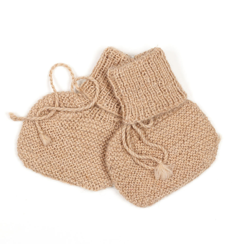 Bløde uld futter i camel farve, perfekt til små fødder. Holder dem varme og komfortable, nemme at tage af og på. Velegnet til 12-18 måneder.