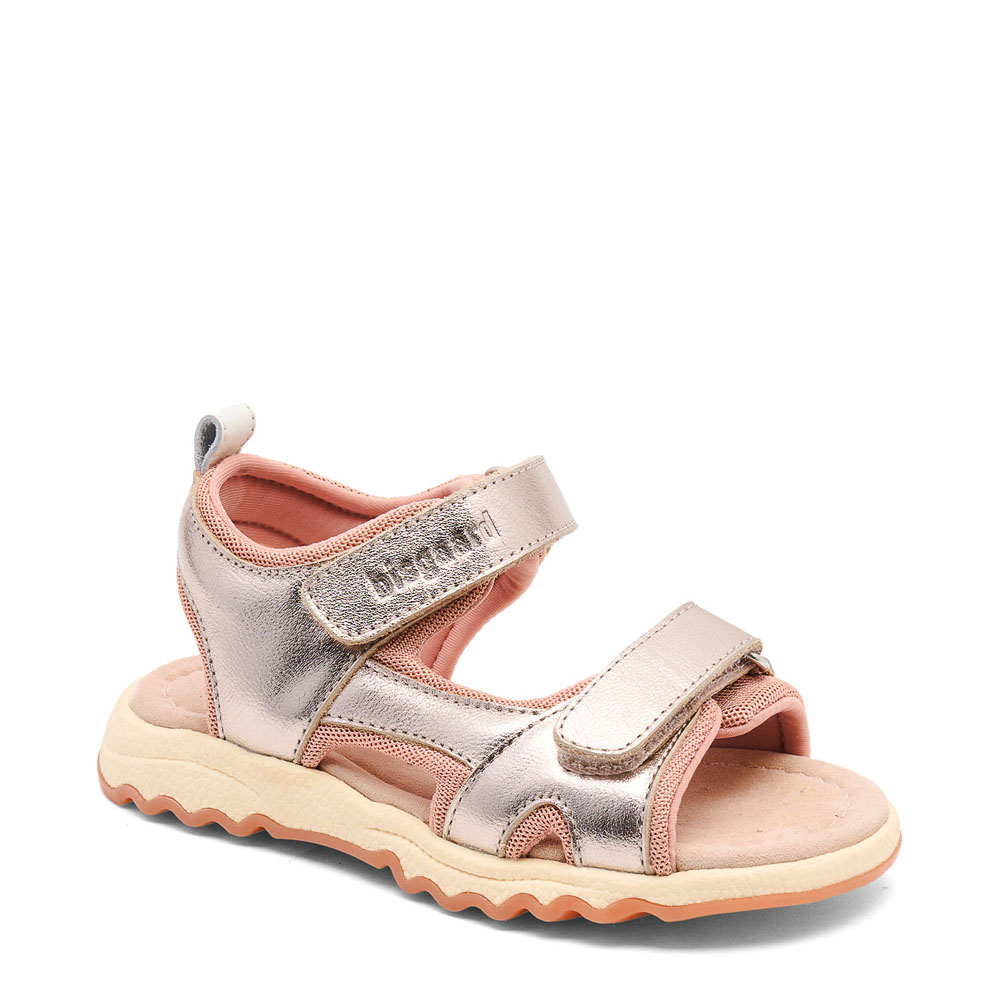 Coco sandaler (31) – Foret med blødt tekstil – Kromfi læderindersål – Fleksibel og skridsikker ydersål – Velcrolukning, der gør sandalen let at få af og på rose gold Coco