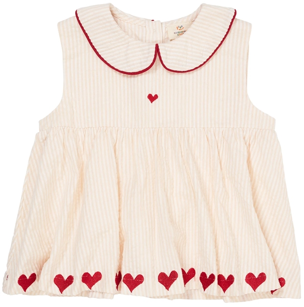 Copenhagen Colors bluse i seersucker med hjerter i dusty rose og cream stripe er en skøn tilføjelse til dit barns garderobe. Den bløde og lette bluse giver en behagelig pasform, som børn elsker at have på. Det fine mønster med hjerter tilføjer et legende touch, og farverne er både stilfulde og tidløse. Blusen er velegnet til både hverdag og fest, og den kan nemt styles med bukser eller nederdele. Det er en perfekt bluse til børn, der ønsker at udtrykke deres personlighed gennem tøj.