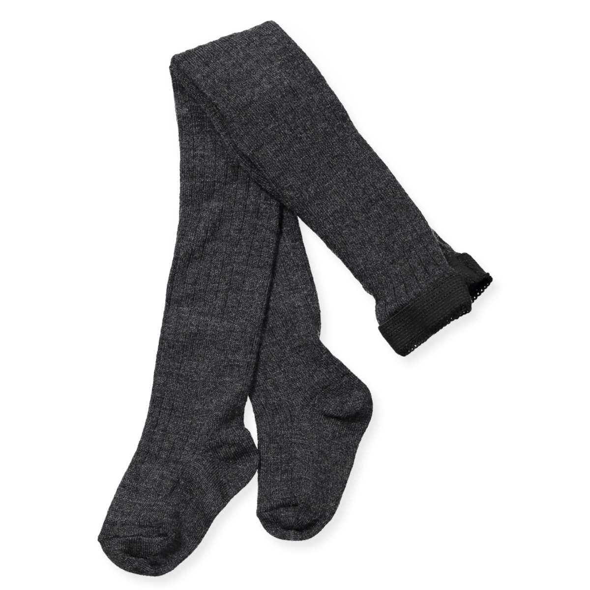 Disse mørkegrå melange strømpebukser i uld er komfortable, varme og holdbare. Ideelle til børn på 110 cm, de sikrer blødhed og god pasform hele dagen.