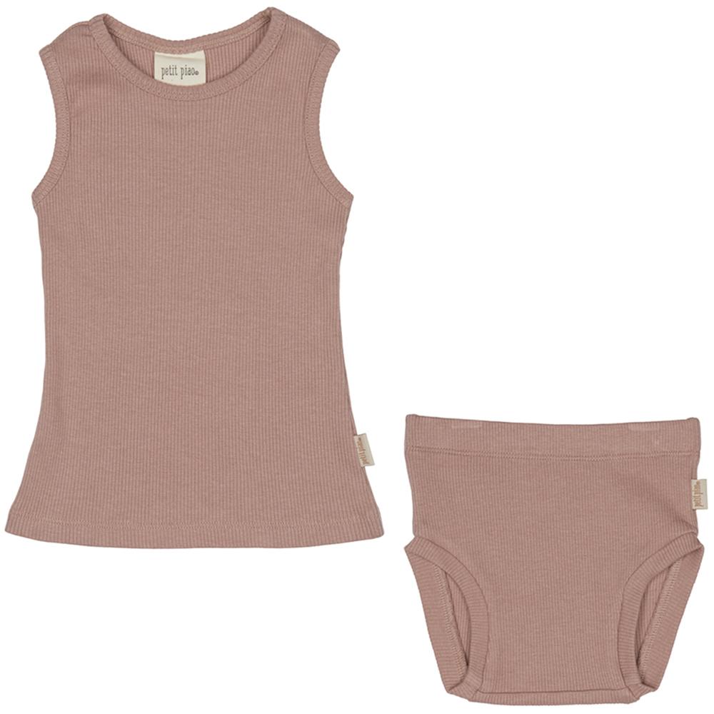 Blødt og åndbart undertøj i mauve farve, perfekt til de små. Sikker og komfortabel pasform til 3 måneder gamle. Let at vaske og holde rent.
