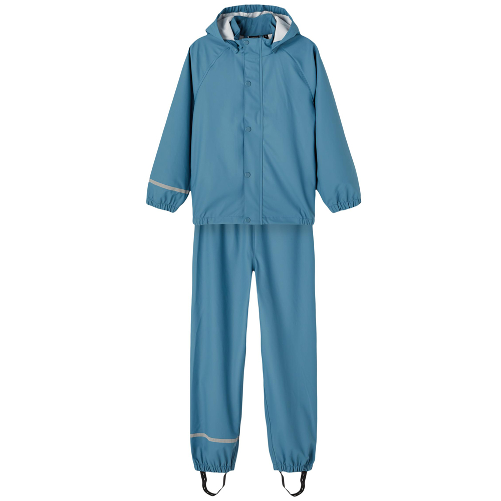 Dry regntøj (2 år/92 cm) – Polyurethane coating – Vindtæt – Reflekser – Justerbare støvlestropper – Justerbare seler i bukser til og med størrelse 104 – Justerbar elastik i bukser fra størrelse 110 REAL TEAL DRY