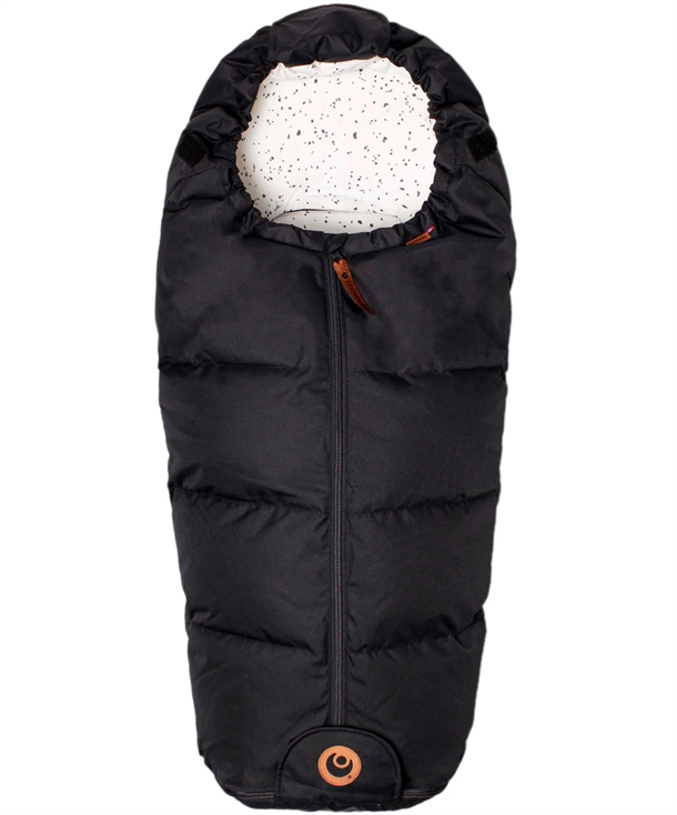 Dens yderstof er sort og lavet i stærkt, genanvendt polyester. Fyldet er af 20% dun/fjer og 80% polyester, hvoraf fordelingen af dun/fjer er hhv. 70/30 og er af høj kvalitet.