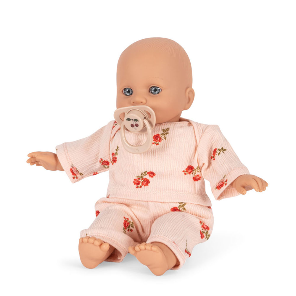 Elisa dukke (One size) Fin vinyl dukke, der kommer i et todelt sæt tøj i bomuld samt medfølgende sut. Tøjet er nemt for barnet at tage af og på dukken. Rengøres med en fugtig klud, brug ikke kemikalier. Højde: 32 cm Velegnet fra 3 år+ ROSIE BLUSH ELISA