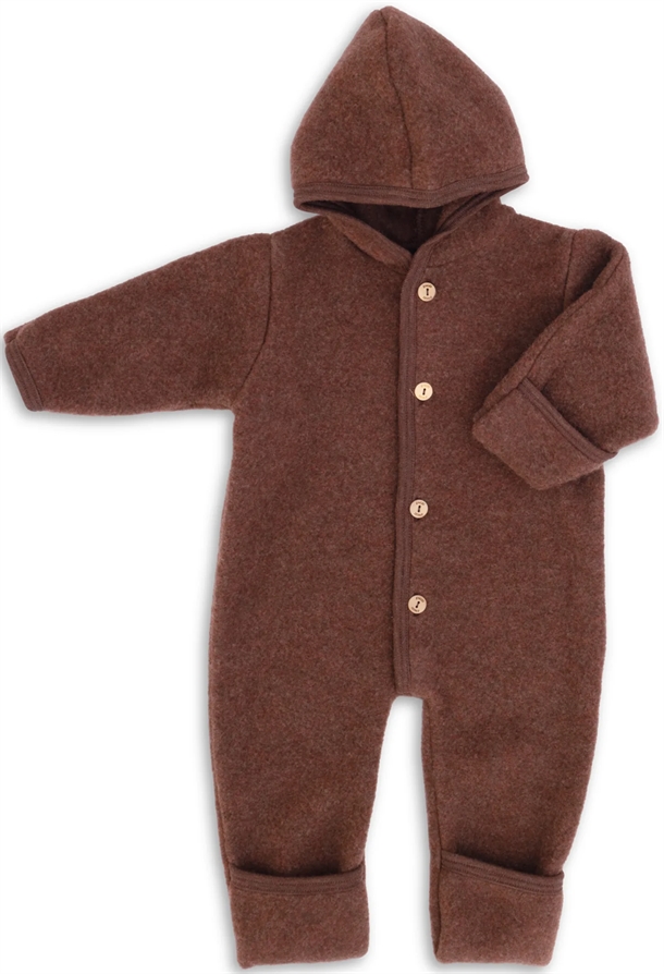 Blød og varm ulddragt med hætte, ideel til leg og hygge. Holdbart materiale, let at rengøre og sikrer komfort hele dagen. Velegnet til de små.