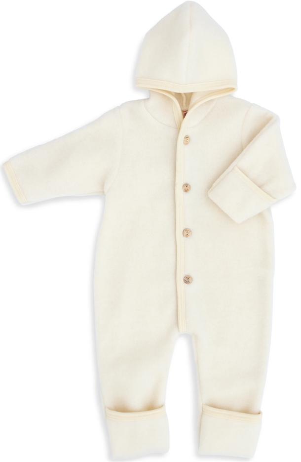 Engel Ulddragt er lavet af blød, åndbar uld, der holder dit barn varmt og komfortabelt. Den har hætte og ombuk, hvilket giver ekstra beskyttelse og fleksibilitet.