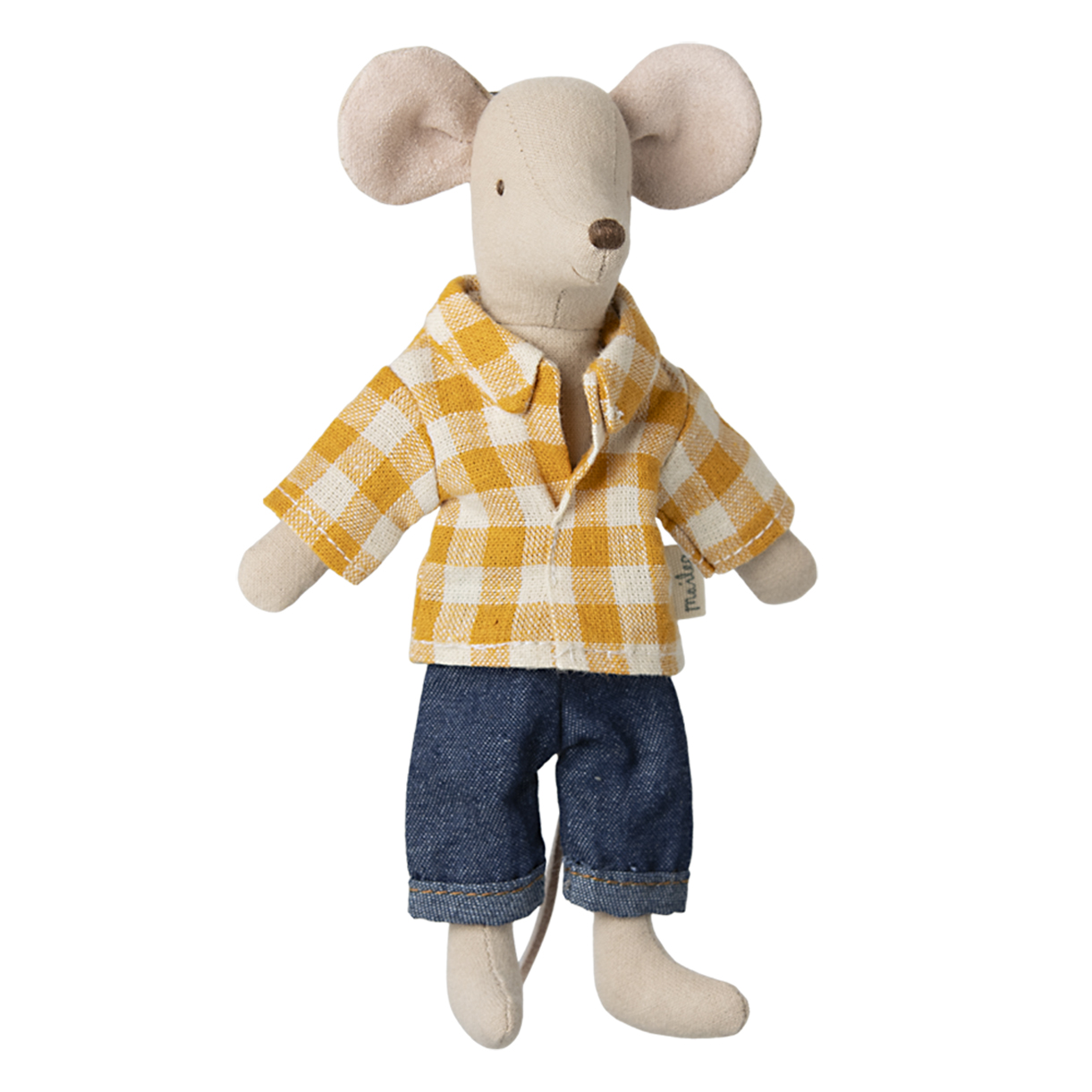 Far mus fra Maileg er en charmerende og sjov legetøjsfigur, der vil glæde børn i alle aldre. Med sit venlige ansigt og fine detaljer er han perfekt til leg og fantasi. Han passer ind i mange forskellige legeuniverser og kan let blive en kær ven for dit barn. Far mus er designet til at være en del af Mailegs magiske verden, hvor børn kan skabe deres egne historier og eventyr. Han er let at håndtere og anbefales til børn, der elsker at lege med figurer. Far mus er en skøn tilføjelse til ethvert legetøjssæt, og han vil helt sikkert bringe mange timers glæde.