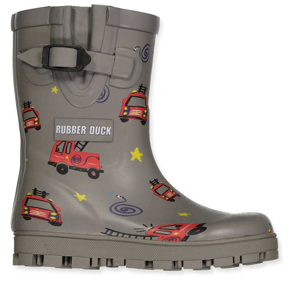 Disse gummistøvler med brandbildesign er både slidstærke og vandtætte, perfekte til leg i al slags vejr. De er nemme at rengøre og giver god komfort til små fødder.