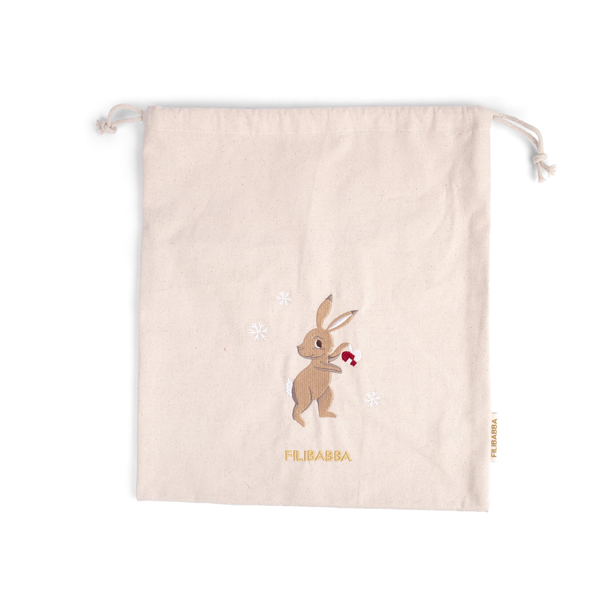 Gavepose af stof med broderi fra Filibabba er en skøn og praktisk løsning til gaveindpakning. Den har et fint motiv af en hare, der passer perfekt til vinterens tema. Gaveposen er ideel til både fødselsdagsgaver og julegaver. Den er nem at genbruge, hvilket gør den til et bæredygtigt valg. Den bløde stofkvalitet giver en rar fornemmelse, og den fine brodering tilføjer et personligt præg. Denne gavepose er velegnet til børn og passer til forskellige anledninger. Giv dine gaver en sød indpakning med denne charmerende gavepose.