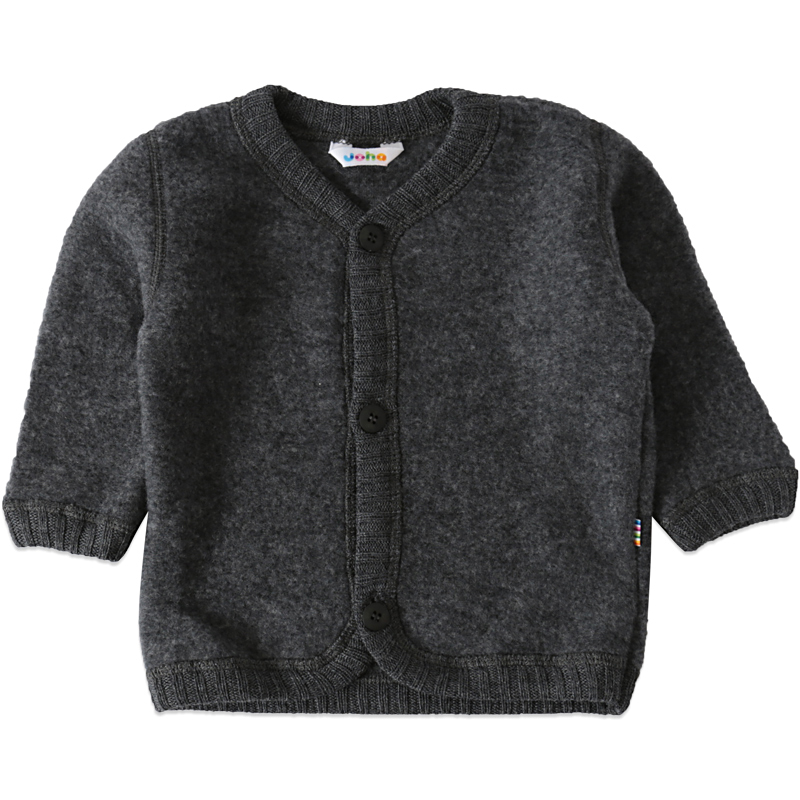 Denne grå uld fleece cardigan fra Joha er blød, varm og komfortabel, ideel til leg. Den er slidstærk og nem at vaske, perfekt til aktive børn.
