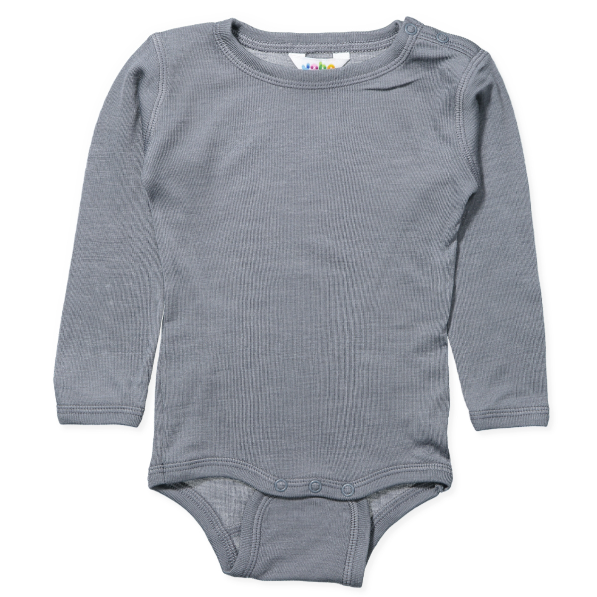 Denne grå uld/silke body er blød og komfortabel, ideel til småbørn. Den sikrer varme og åndbarhed, og kan let tåle vask. Perfekt til daglig brug.