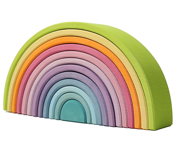 Grimms regnbuer er lavet i 100% ren bæredygtigt FSC-certificeret træ og garanteret giftfri. Certificerede harmløse farver efter EN 71 og CPSIA/ASTM 963 standarder.