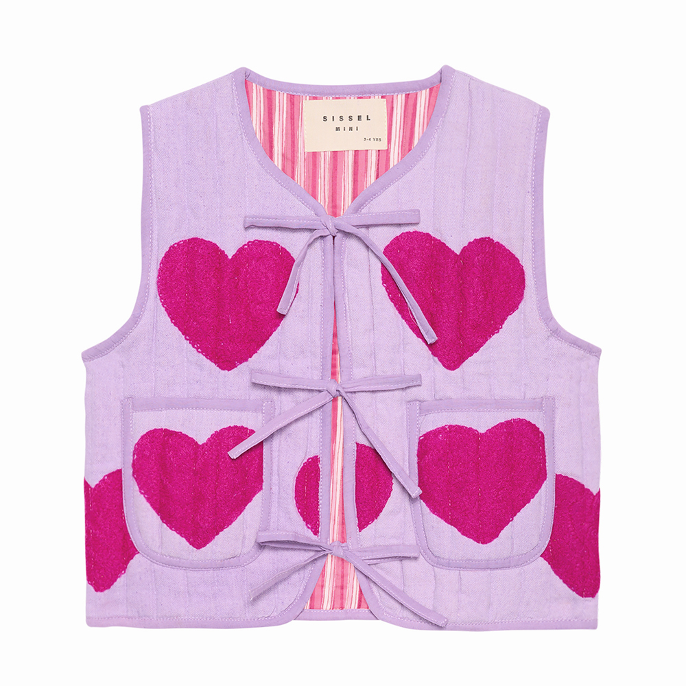 Honey MINI leftover vest (3-4 år) Lavet af forskellige rester af bomuldsmaterialer. Pink Hearts Honey MINI Vest