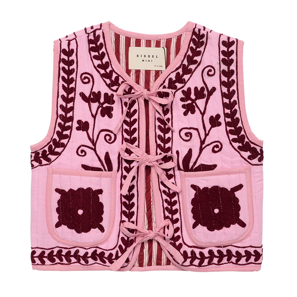 Honey vest (5-6 år) – Lukkes med bindebånd foran – Forlomme i hver side Burgundy Honey