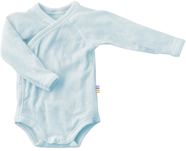 Joha Uld Body i lyseblå er lavet af blød uld, der holder dit barn varmt og komfortabelt. Slå-om designet gør det nemt at tage af og på.