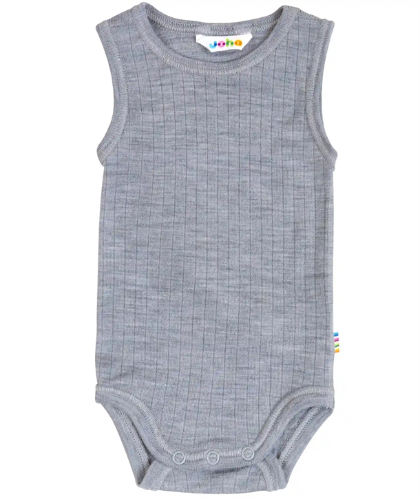 Joha Uld Body uden ærmer i grå melange er blød, varm og åndbar. Ideel til komfort og bevægelsesfrihed. Maskinvaskbar for nem rengøring. Perfekt til småbørn.