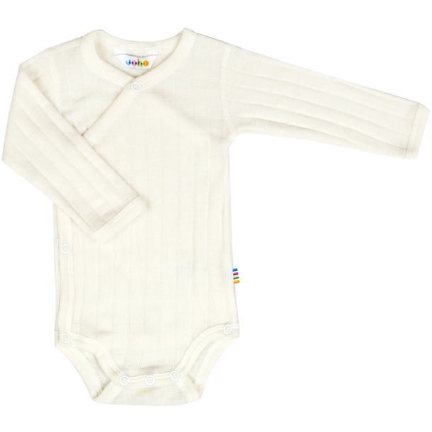 Joha Uld/Silke Body er lavet af bløde, åndbare materialer, der holder dit barn varmt og komfortabelt. Slå-om designet gør det nemt at tage af og på. Ideel til sart hud.
