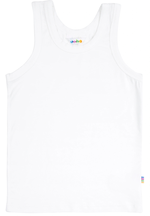 Joha undertrøje i hvid bambus er blød og åndbar, hvilket sikrer komfort hele dagen. Den er holdbar og nem at vaske, perfekt til aktive børn.