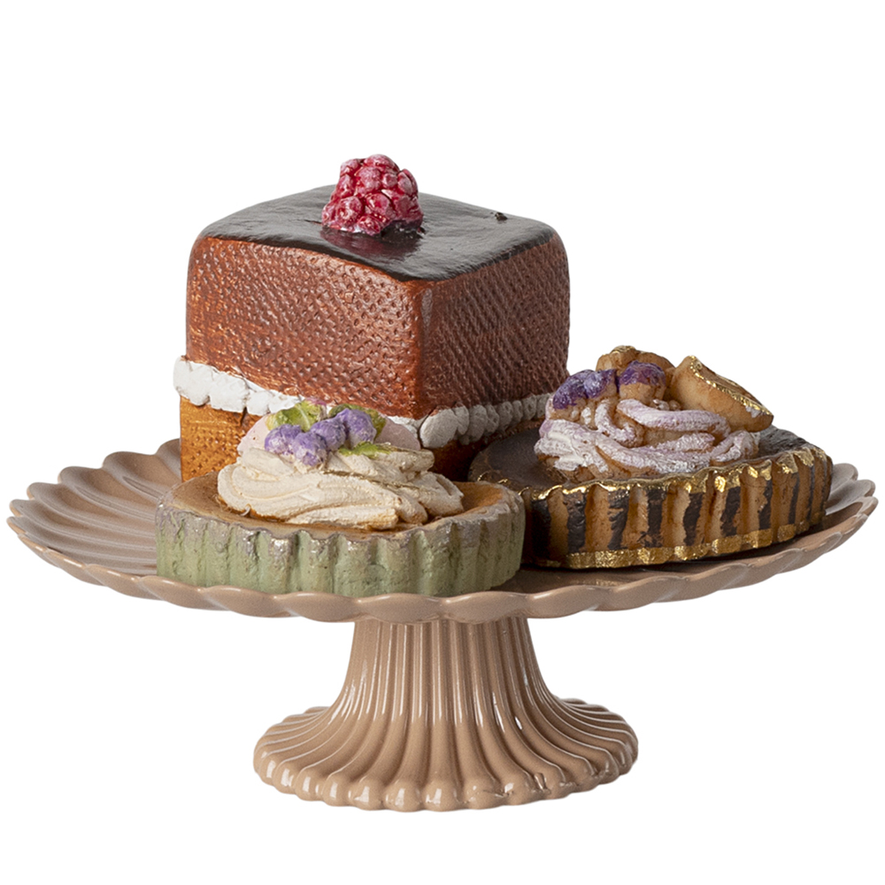 Kager og kagefad – Mini (One size) Smukt lille kagesæt med 3 lækre kager på et flot dekoreret kagefad – kagerne er dekoreret i hånden. Sættet er lavet i størrelse mini til Teddy familien, samt kaniner og harer størrelse 1 og 2. 11-4121-00