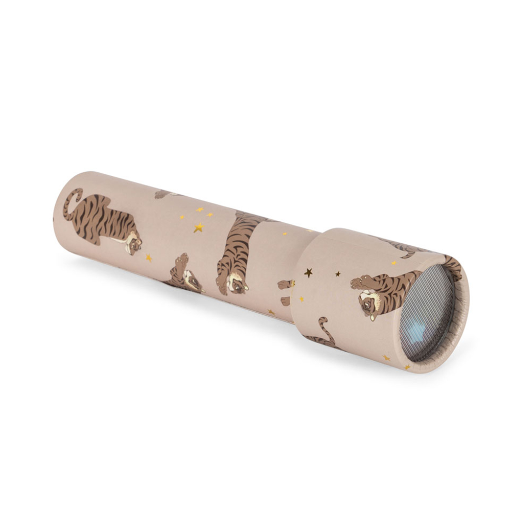 Kalejdoskop (One size) Konges Sløjd kaleidoskopet har perler indeni, som laver de smukkeste, skiftende mønstre, der kan ses gennem kighullet og ændres ved at dreje på kaleidoskopet. Dimensioner: – 19 x 4,5 cm TIGER KALEIDO