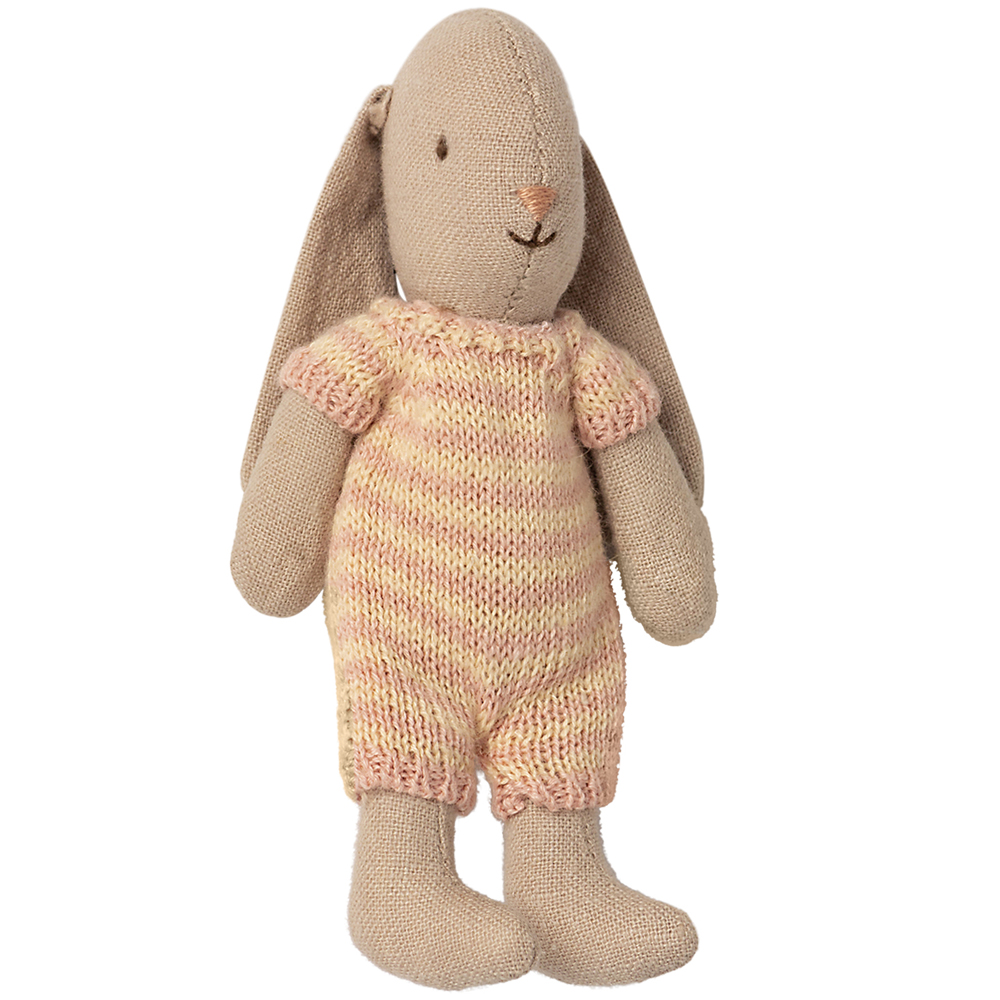 Kanin pige – micro (One size) – Sød kanin med hængeører og strikdragt fra Maileg – hør/bomuldsblanding der kan vaskes på 30°C – Maileg anbefaler: +3år