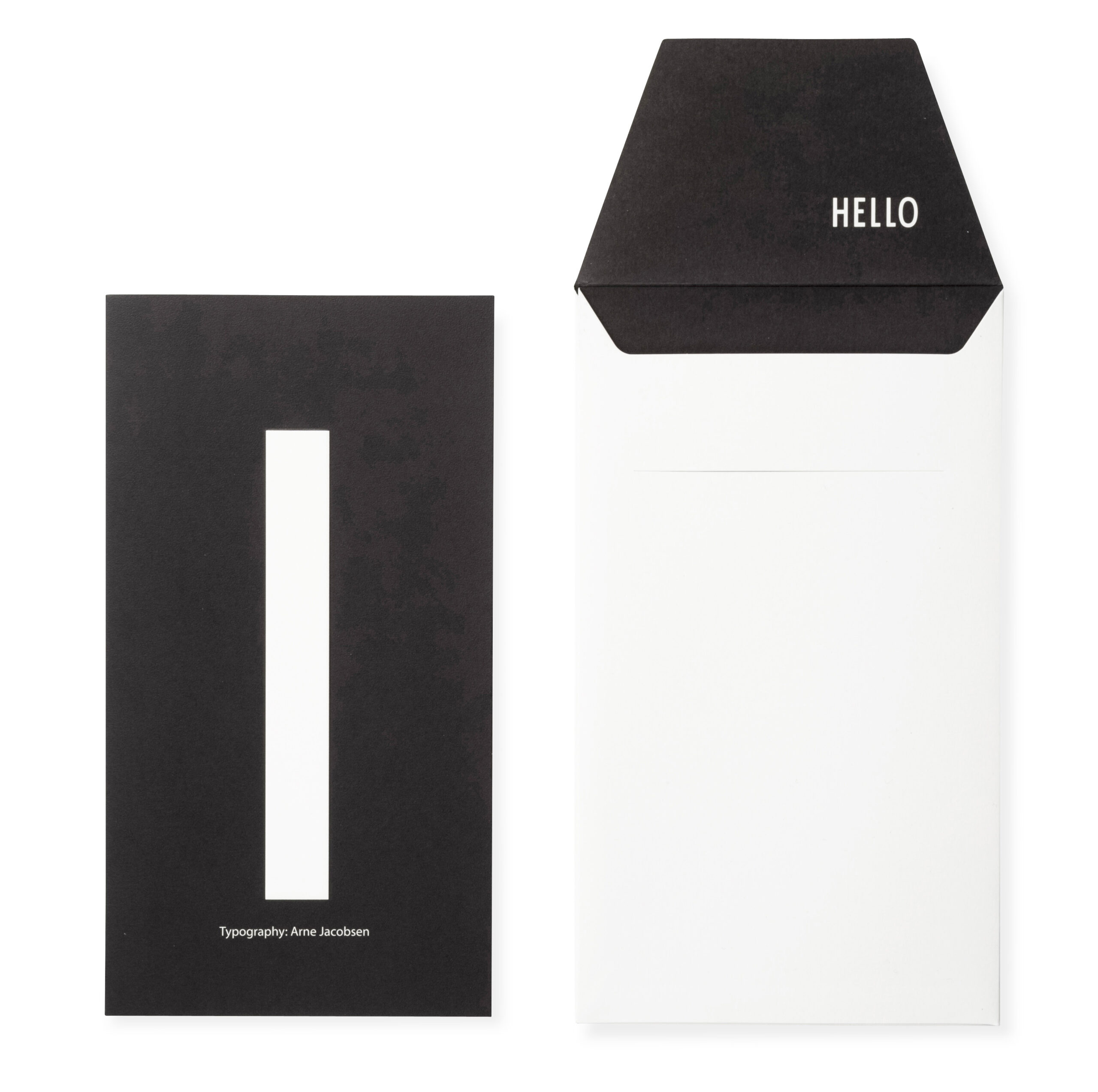 Kort m/kuvert I Mål på kort: 18,6 x 9,9 cm. Mål på konvolut: 11,1 x 17,0 cm.