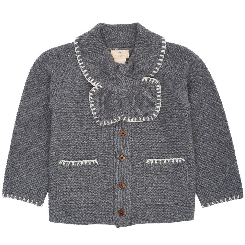 Lammeuld cardigan (2 år/92 cm) DK GREY/CREAM
