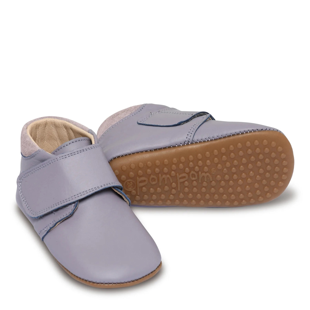 Disse lavendel hjemmesko med pom pom er bløde og komfortable, ideelle til små fødder. De sikrer godt greb og er lette at rengøre, perfekt til leg indendørs.