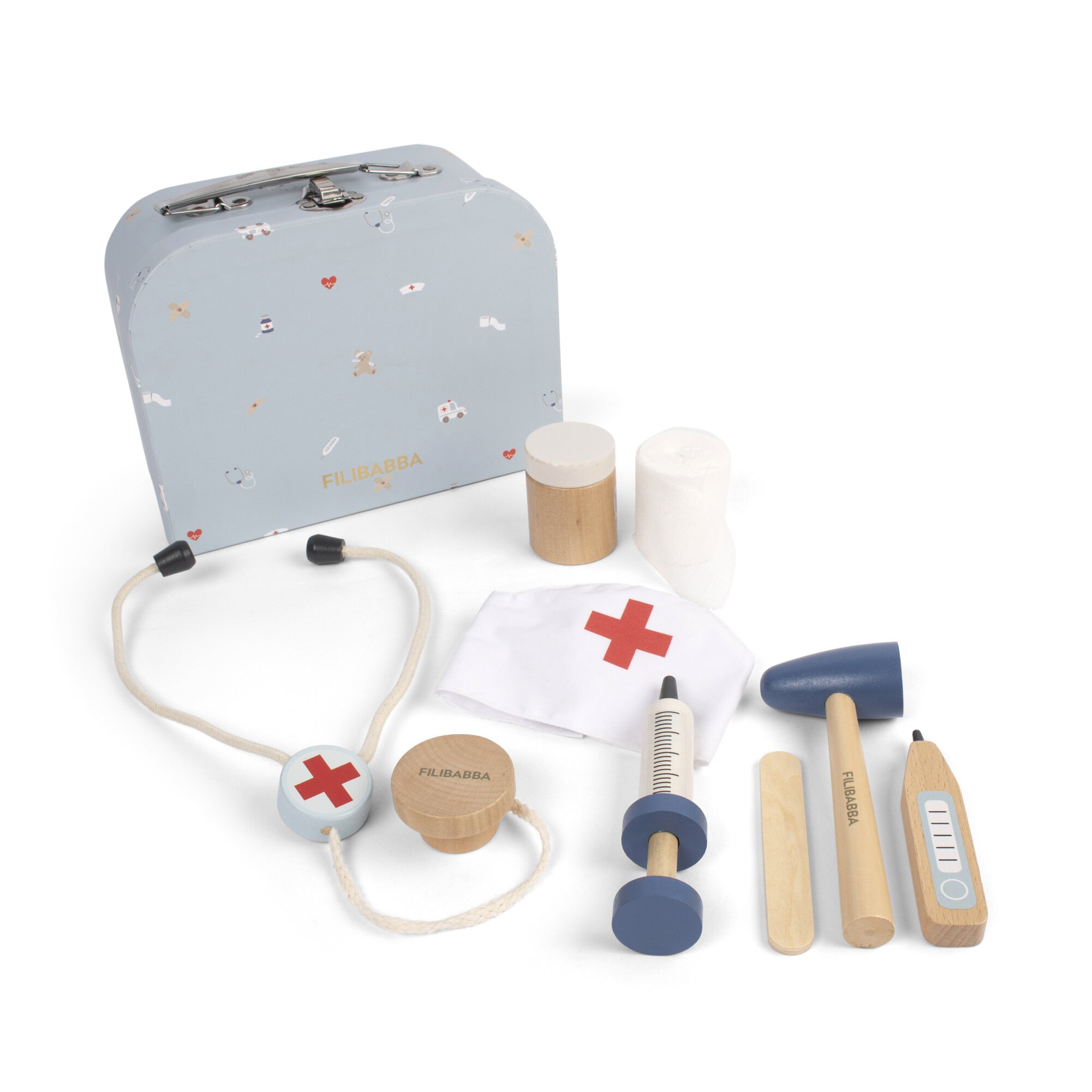 Legekuffert – Doktorsæt i træ fra Filibabba er en fantastisk legeoplevelse for de små. Dette sæt giver børn mulighed for at lege læge og tage sig af deres dukker eller bamser. Med forskellige redskaber kan de udforske deres fantasi og lære om sundhed. Legekufferten er praktisk til opbevaring og gør det nemt at holde orden på alle delene. Sættet er velegnet til børn, der elsker at lege rollelege og udvikle deres sociale færdigheder. Det er en sjov måde at stimulere børns nysgerrighed og kreativitet på.