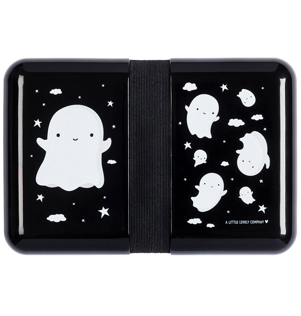 Madkasse – ghost (One size) 18x12x6 cm Rigtig god og anvendelig madkasse med et stort rum. Lukkes med bredt elastik om kassen. Lavet af Tritan plast der er fri for BPA og Phtalater. Vi anbefaler at madkassen vaskes op i hånden og ikke opvaskemaskine. Blac