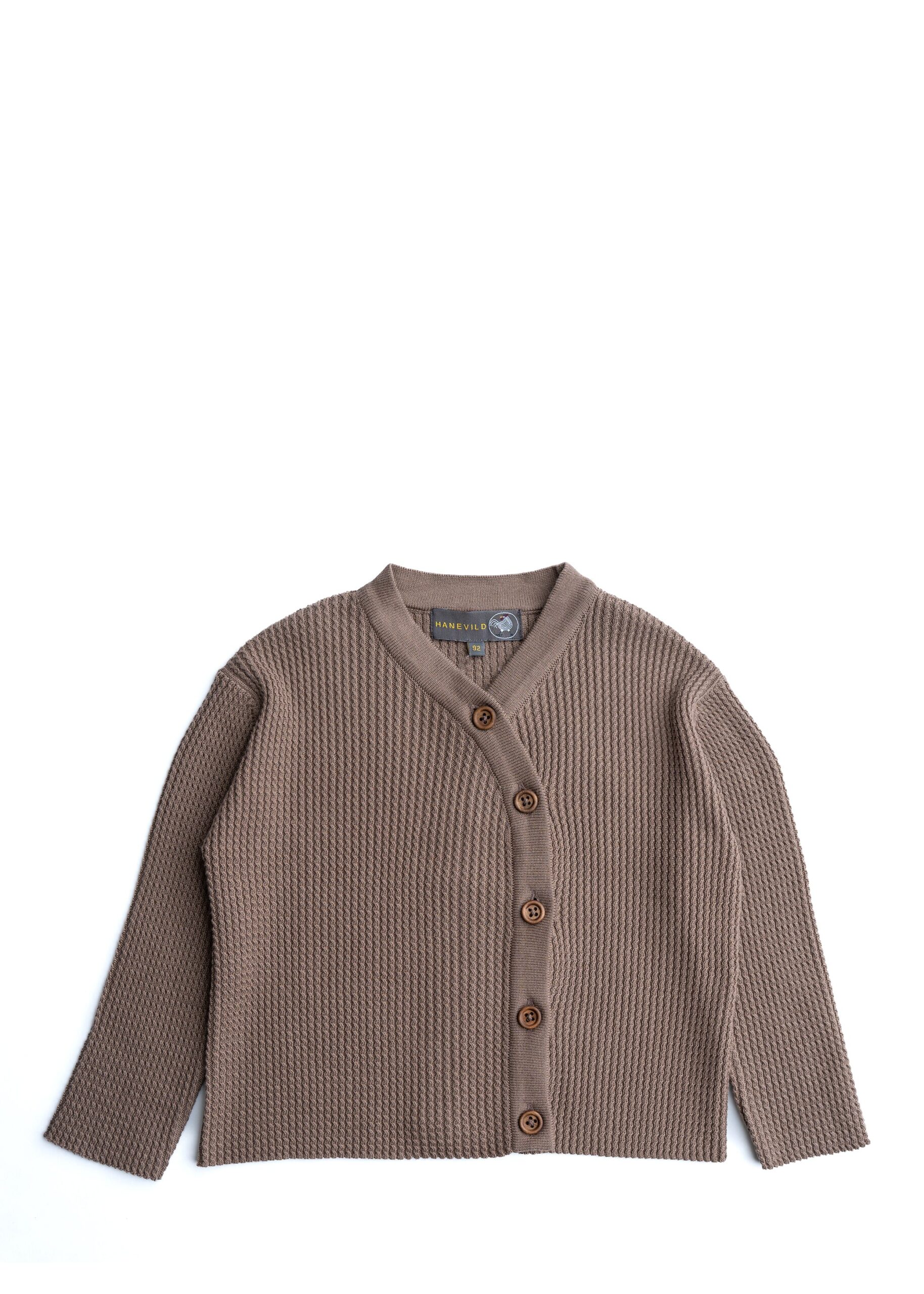 Cardigan med kabelmønster, lukning til siden.Der forefindes matchende bukser hertillavet i en slidstærk, høj kvalitets bomuld.100% bomuldVaskemaskine ved 30 grader.Må ikke tørretumblesMå ikke blegeslægges flat ved tørring