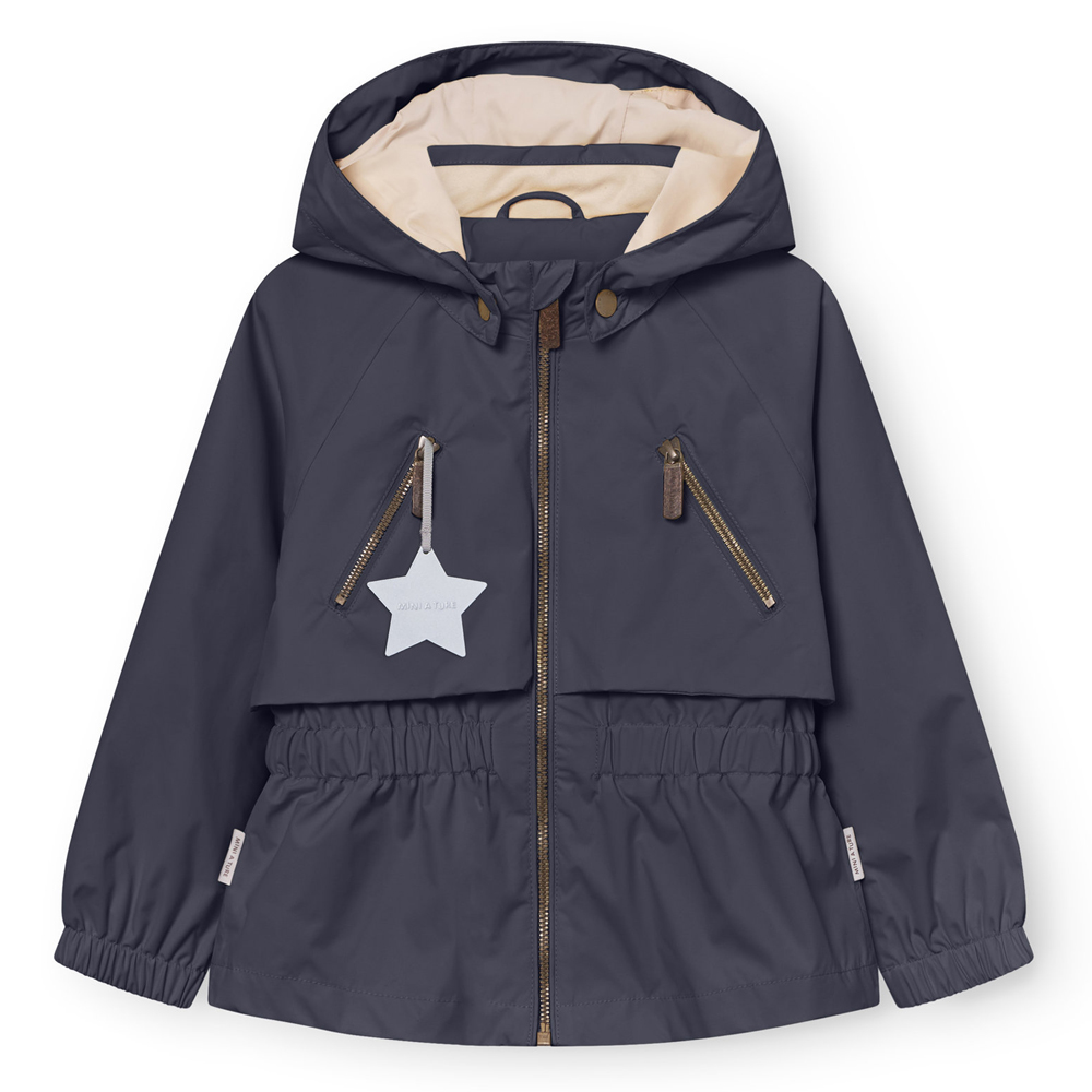 MATALGEA jakke (8 år/128 cm) – Elastik i talje – Den indbyggede kappe leder vand væk fra kroppen – Stjernerefleks findes i lommen foran – Forlommer – Reflekslogo bagpå – Let bomuldsmiks foer – Vandsøjletryk 12,000 mm – Åndbarhed 8000 – Vindtæt – Slidstyrk