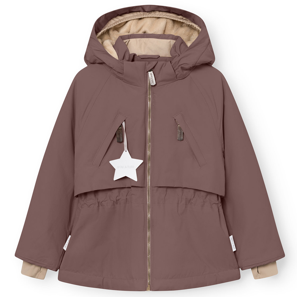 MATALGEANA vinterjakke (10 år/140 cm) – Aftagelig hætte med vindfang – Elastik i taljen – Snemanchet ved begge håndled med hul til tommelfinger – 10 års garanti ved MINI A TURE Peppercorn plum MATALGEANA