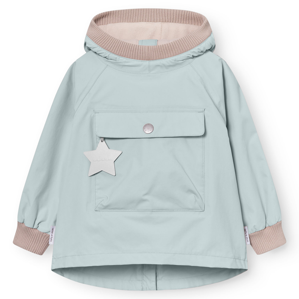 MATBABYVITO anorak med fleecefoer (12 mdr/80 cm) – Blødt fleecefoer – Vandsøjletryk: 12.000 mm – Åndbarhed: 8.000 – Vindtæt – Tapede sømme – Stor forlomme – Lynlås i ryggen – Blød rib kvalitet omkring hals, hætte og håndled – Stjernerefleks Cloud blue MAT