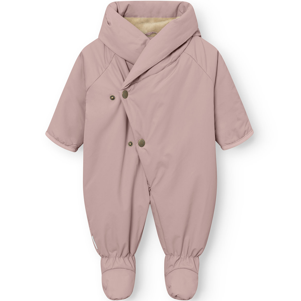 MATFIANNA køredragt (1 mdr/56 cm) – Indbyggede fødder – Blød fleece indvendig – Lukkes og justeres med snore – Hætte, der lukker behageligt rundt om babys hoved Cloudy rose MATFIANNA