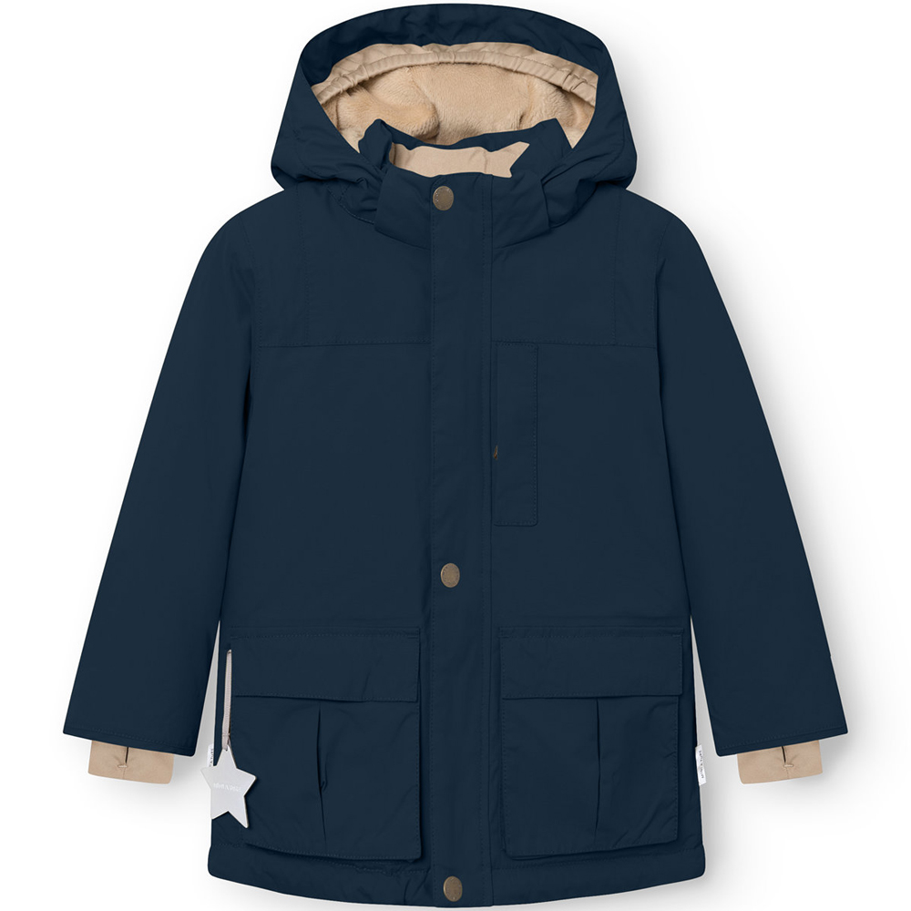 MATKASTORIO vinterjakke (4 år/104 cm) – Foret indvendig med blød fleece i den øverste del af jakken og Sorona Aura i den nederste del af jakken – Aftagelig hætte – Stof ved begge håndled med hul til tommeltot – Lomme i hver side, der lukkes med magnet – B