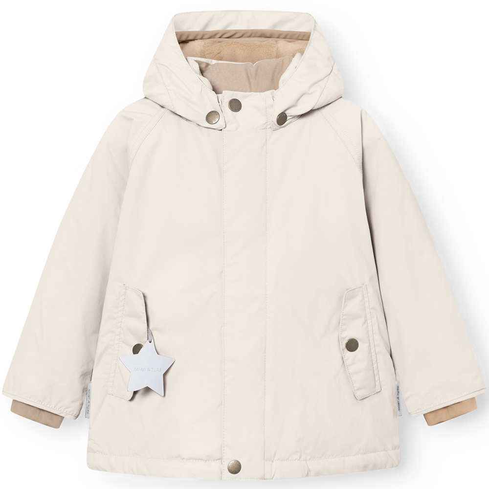 MATWALLY vinterjakke (2 år/92 cm) – Aftagelig hætte med pelskant – Sidelommer med flap og trykknap – Snemanchet ved begge håndled med hul til tommelfinger – 10 års garanti ved MINI A TURE Angora cream MATWALLY