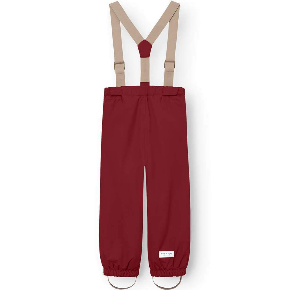 MATWILAS skibukser (3 år/98 cm) – Justerbare seler i elastik – Elastik i talje og nederst i buksekanten – Aftagelige fodstropper i gummi Red merlot MATWILAS