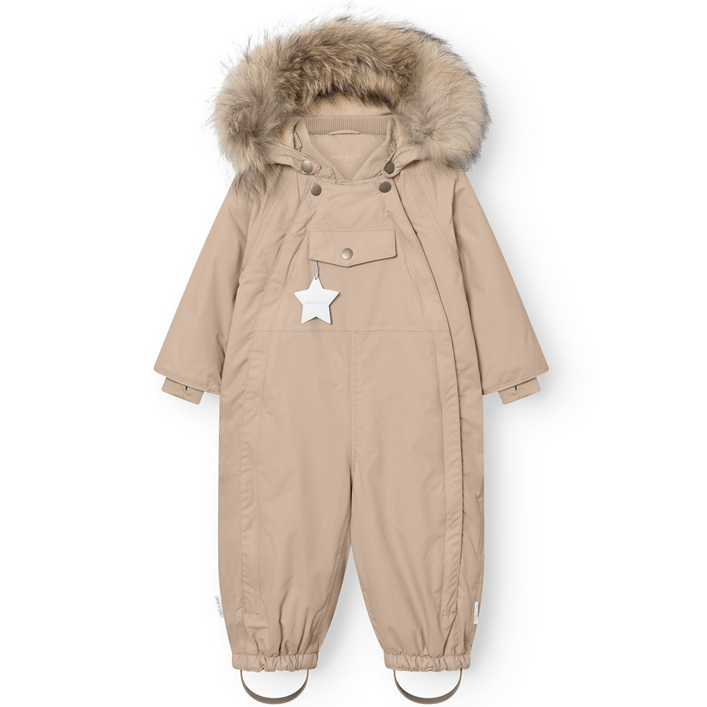 MATWISTI flyverdragt m. pels (18 mdr/86 cm) – Blød rib i halsudskæringen – Brystlomme ved flap og trykknap – Snemanchet med hul til tommelfinger – Elastik i buksekanten og aftagelige fodstropper i gummi – 10 års garanti ved MINI A TURE Savannah tan MATWIS