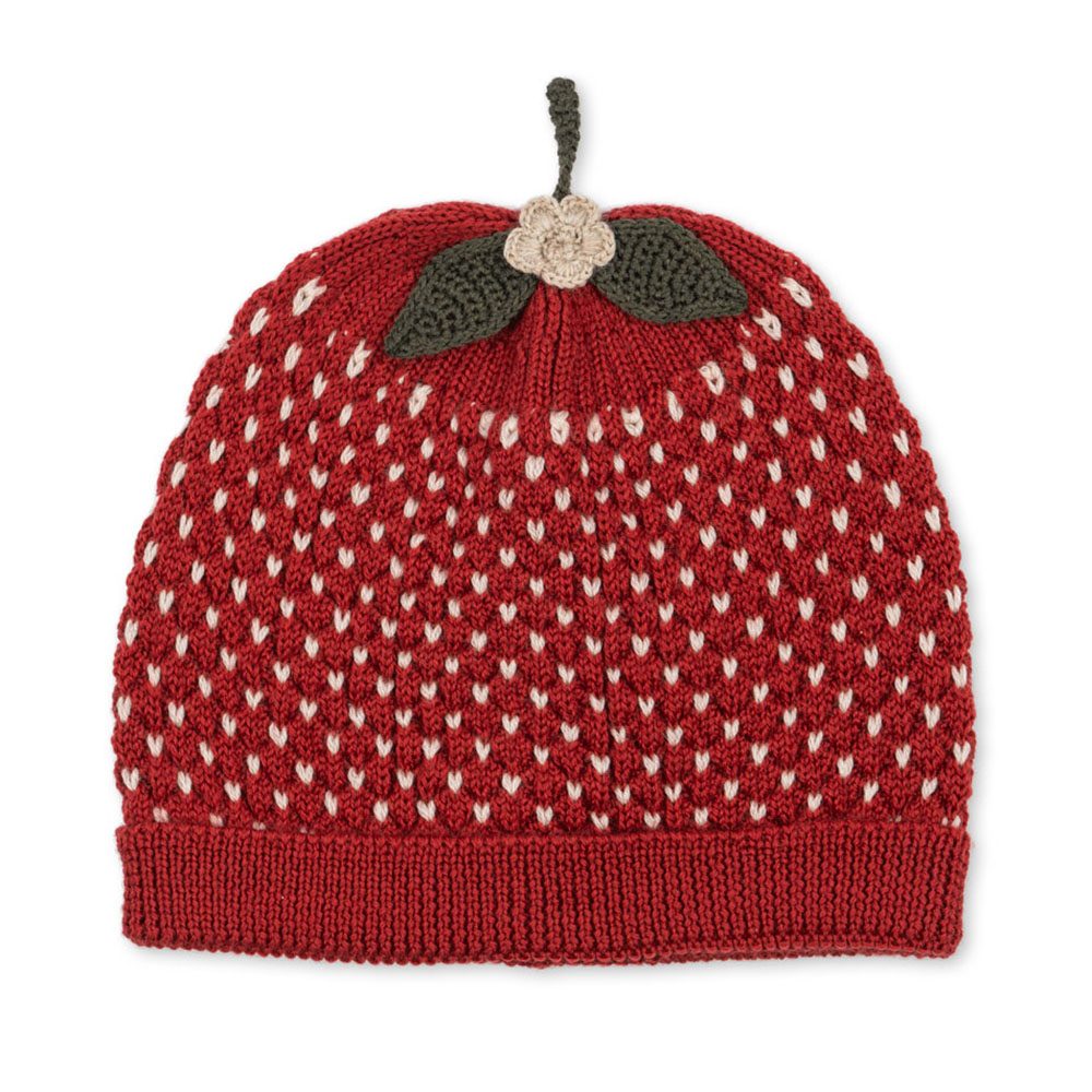 Denne Merinould Strawberry hue er blød og varm, perfekt til børn i alderen 2-4 år. Den er holdbar, let at rengøre og sikrer komfort hele dagen.