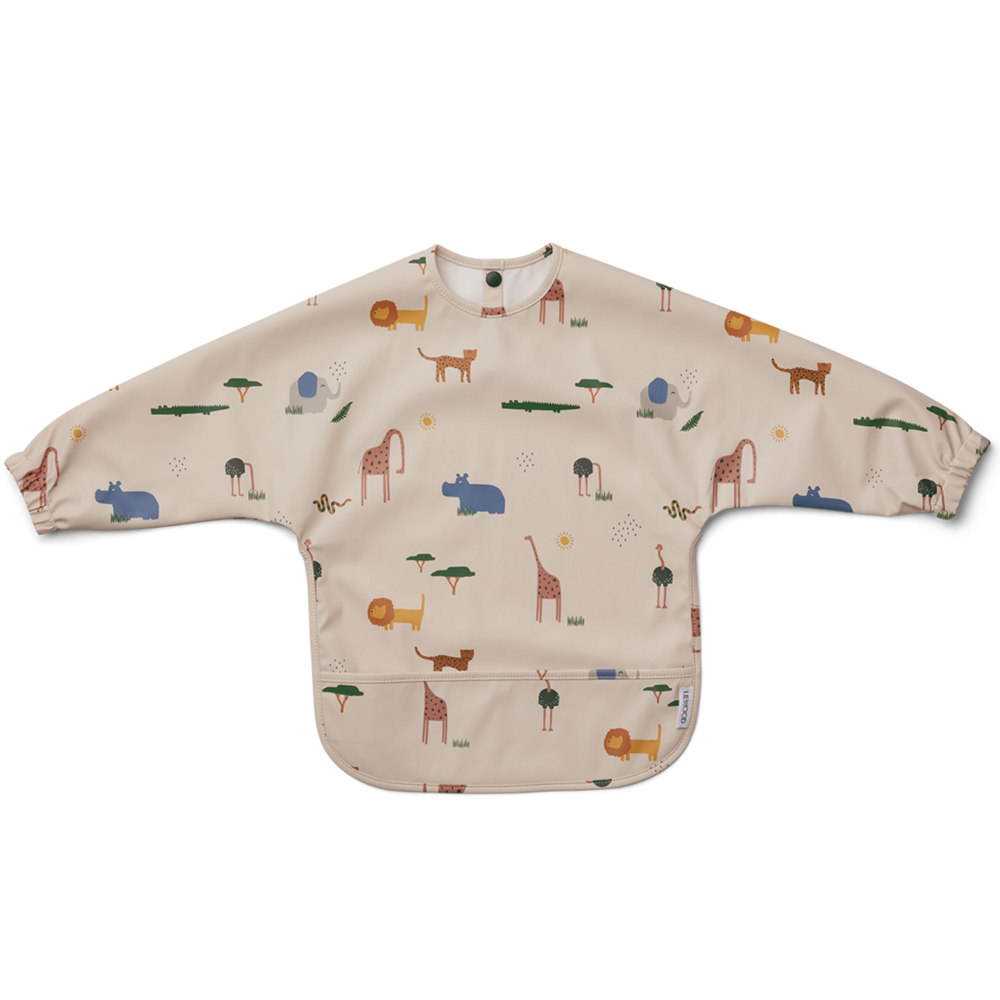 Merle spiseforklæde fra Liewood er lavet af bløde, vandafvisende materialer, der beskytter tøj og er nemt at rengøre. Det er perfekt til leg og måltider for små børn.