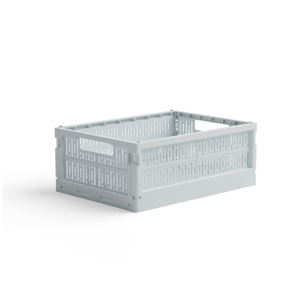 Midi kasse – ice cube blue (One size) Et bæredygtigt valg – lækre sammenklappelige kasser lavet af 100% genanvendt plastik – helt uden brug af virgin plastik. Du kan nemt stable de forskellige størrelser ovenpå hinanden. Eksempelvis passer to mini kasser