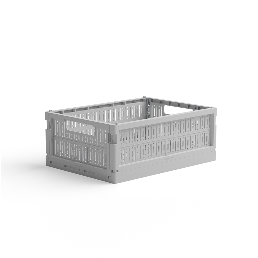 Midi kasse – misty grey (One size) Et bæredygtigt valg – lækre sammenklappelige kasser lavet af 100% genanvendt plastik – helt uden brug af virgin plastik. Du kan nemt stable de forskellige størrelser ovenpå hinanden. Eksempelvis passer to mini kasser hel